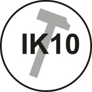 - +IK10: مقاوم در برابر ضربه جسمی با وزن 10 کیلوگرم از فاصله چهل سانتیمتری