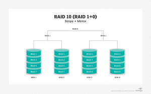 RAID 10 استاندارد جدیدتری است که ترکیبی از دو پیکربندی RAID 0 و RAID 6 می باشد. (Mirroring و Stripping) این نوع فناوری RAID سرعت بالایی داشته و از در جلوگیری از خراب شدن درایوها، تولنرانس بالایی دارد. بنابراین ، این دستگاه دو برابر گرانتر از RAID 5 است. اما با این وجود کارایی بالا و عملکرد خوب آن ، امروزه استفاده از RAID 10 رایج نمی باشد.
